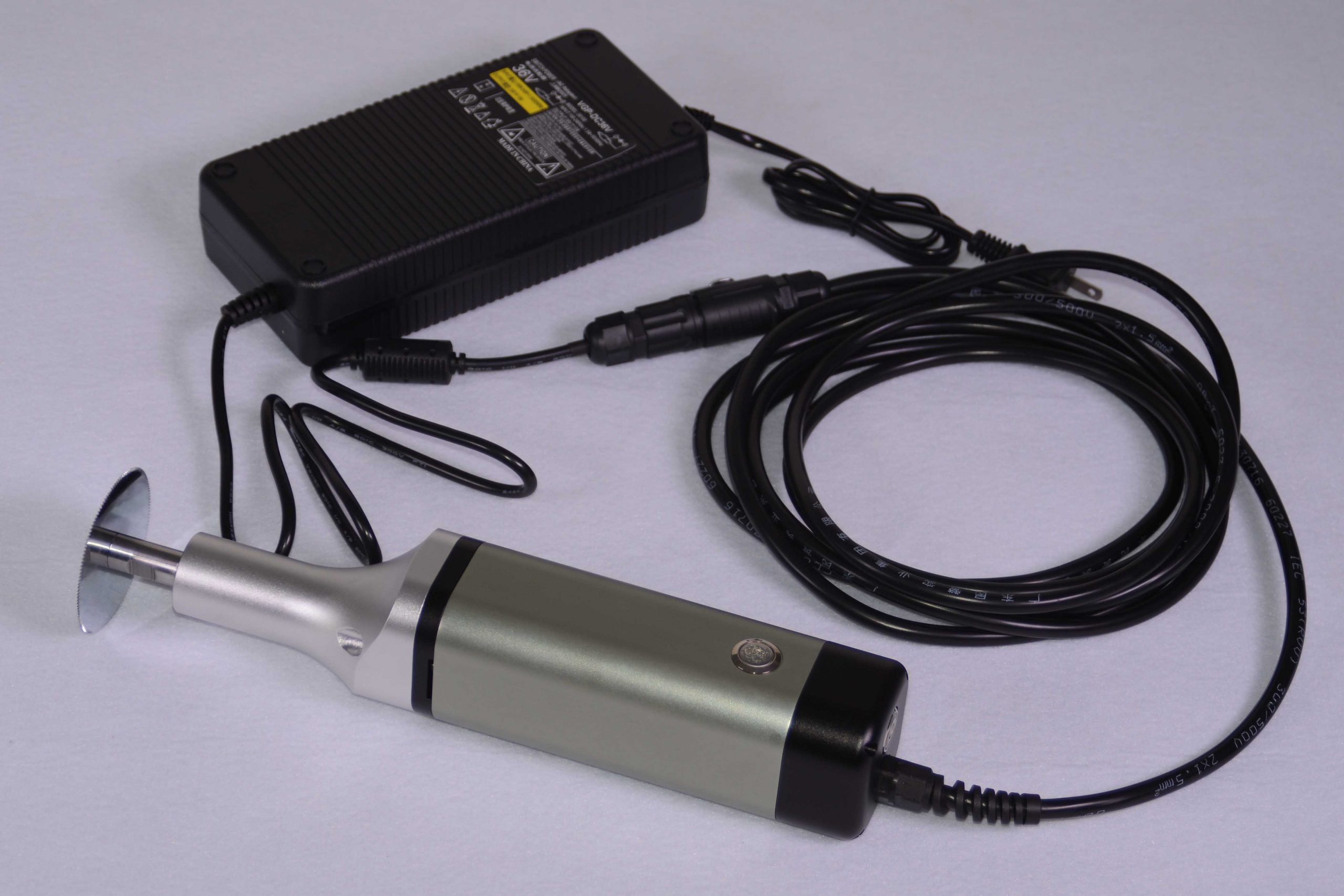 - 电源适配器输入端连接AC220V电源,输出端连接开颅锯。