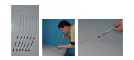- 将1克碘封装在玻璃管中,再把玻璃管放入塑料管中,玻璃管前后都放置过滤棉。塑料管前接出气管,后接进气管,组成1支碘熏管。6支碘熏管组成1包。